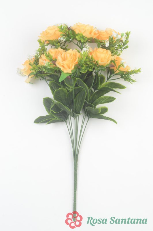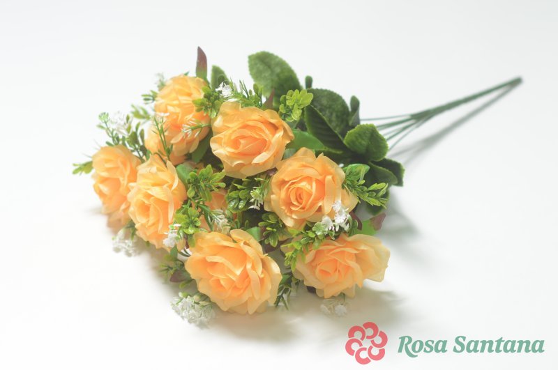 Ветка в буекте роза 10 голов(1010237) персиковый