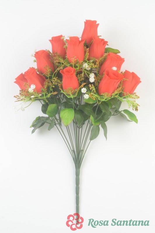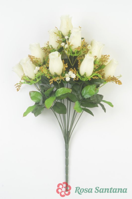 Ветка в букете бутон розы 14 голов с золотой розеткой (1010237)